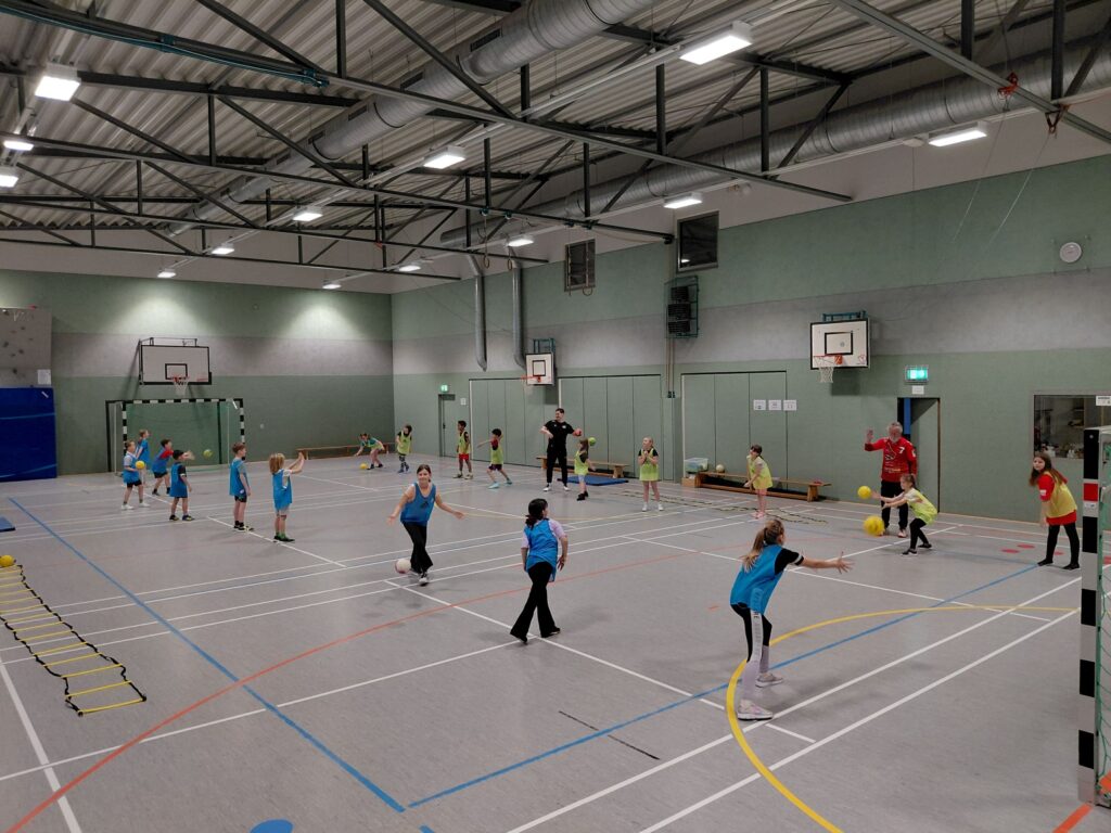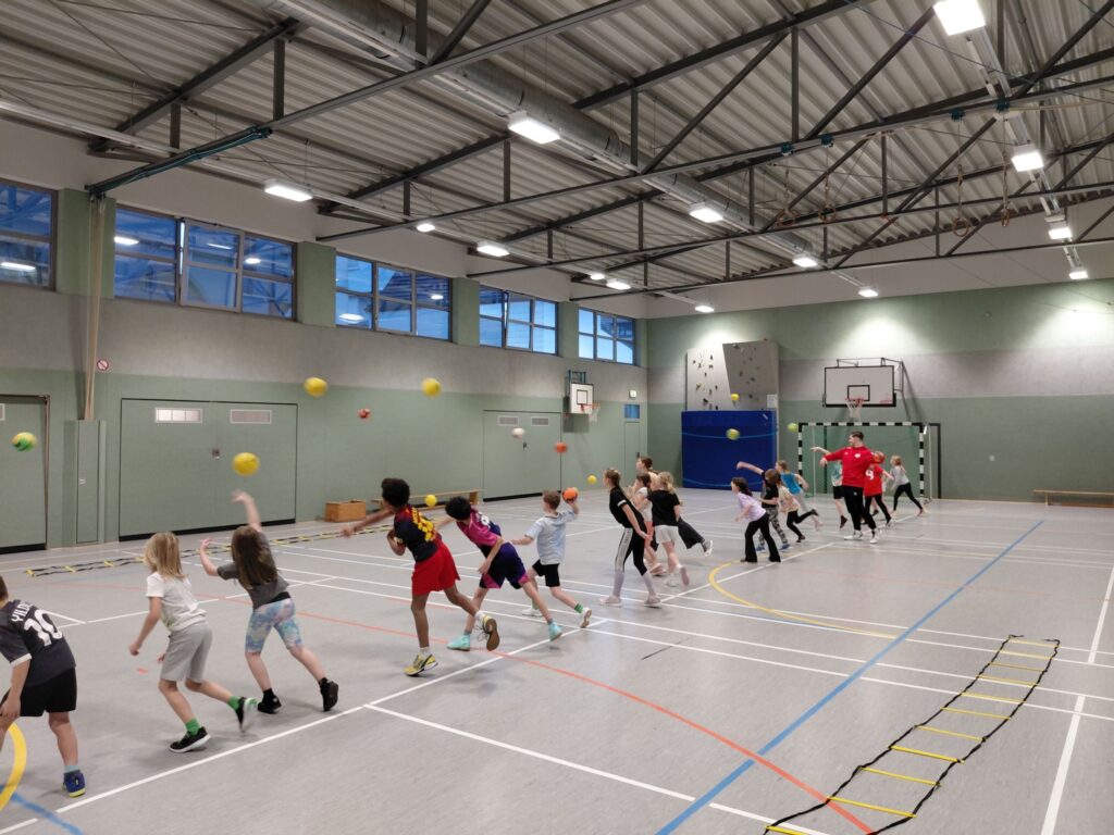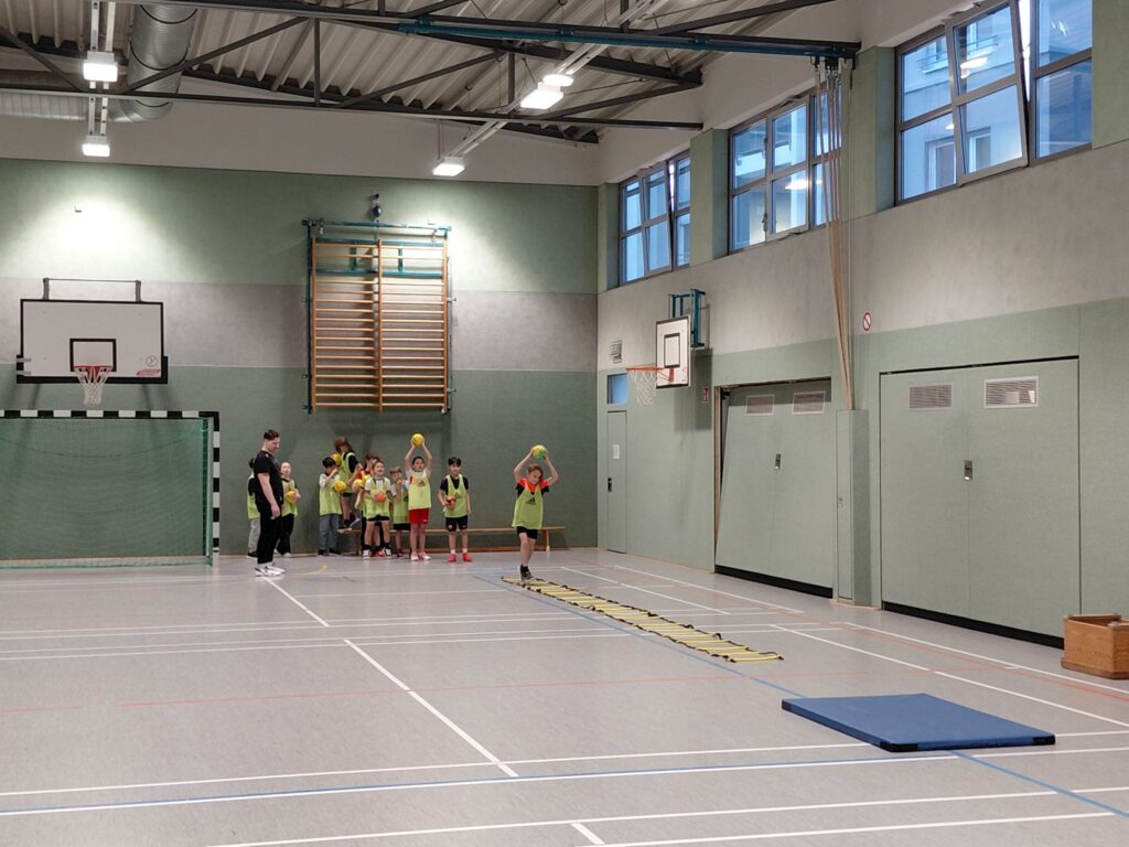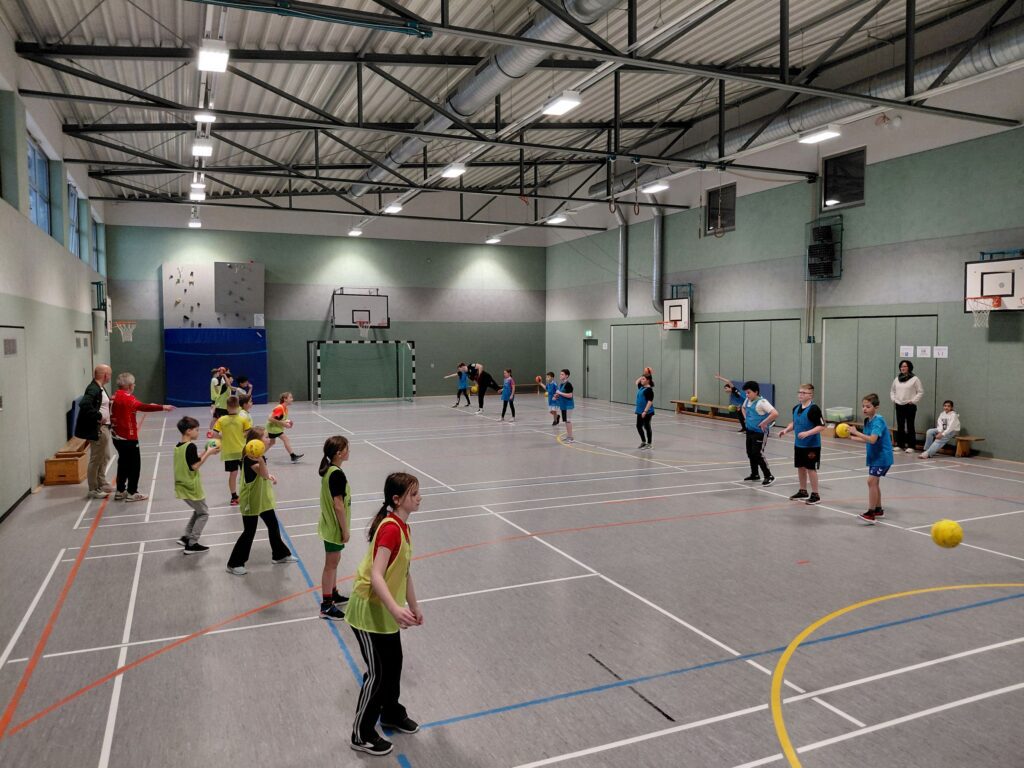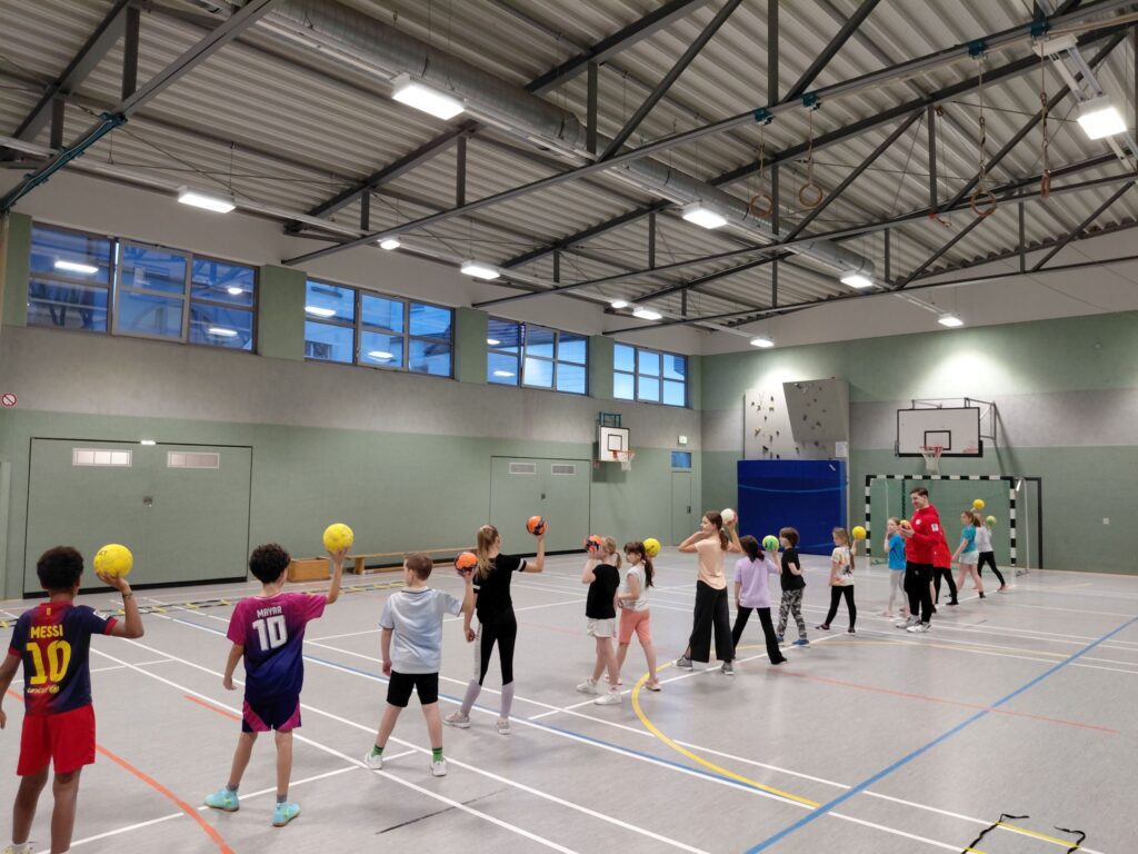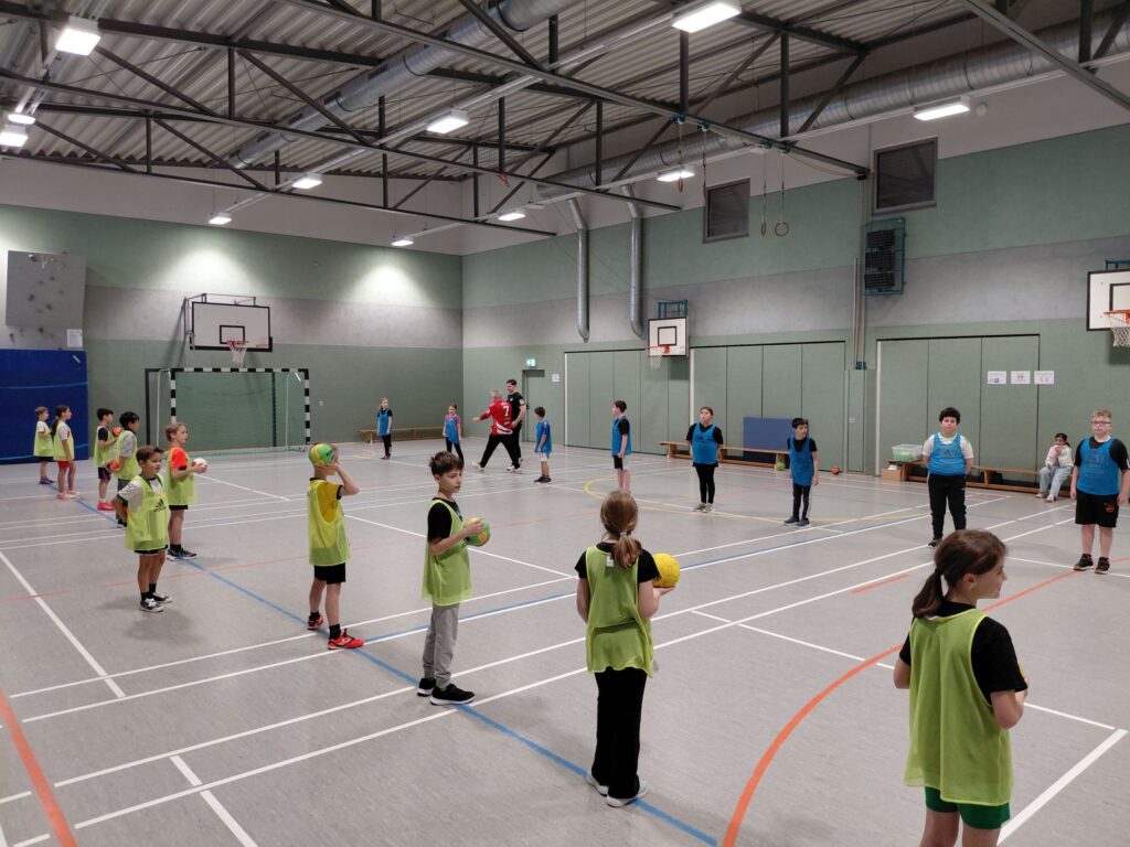 Am Dienstag, 25.11.2025 fand in unserer Turnhalle für die Schülerinnen und Schüler der Jahrgangsstufe 4 der Grundschulaktionstag Handball statt.
