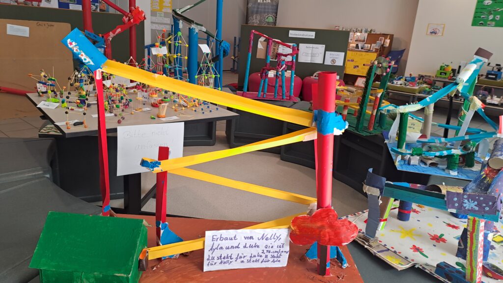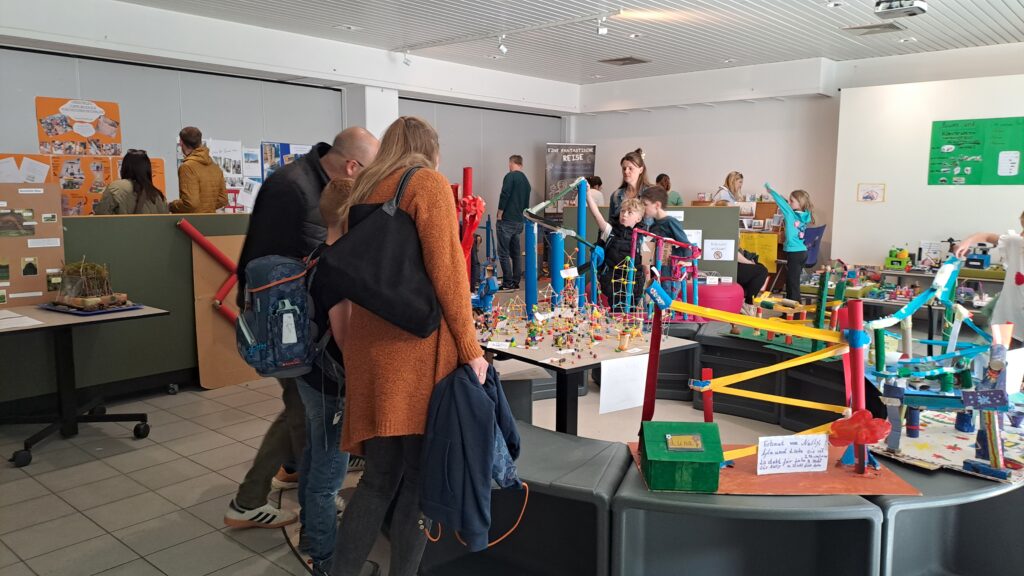 Die Ausstellung zeigte einen fantastischen Abschluss des Projekts! Es war beeindruckend zu sehen, wie aus einfachen Alltagsmaterialien und klassischen Bausteinen wie Kapla oder Lego solch komplexe Welten entstehen. Die nachgebildete Biberburg und der Malroboter schlagen eine spannende Brücke zwischen klassischem Handwerk und moderner Technik. Solche Präsentationen zeigen nicht nur das Endergebnis, sondern auch, wie viel Teamarbeit und Problemlösungskompetenz die Kinder in den vergangenen Wochen entwickelt haben.